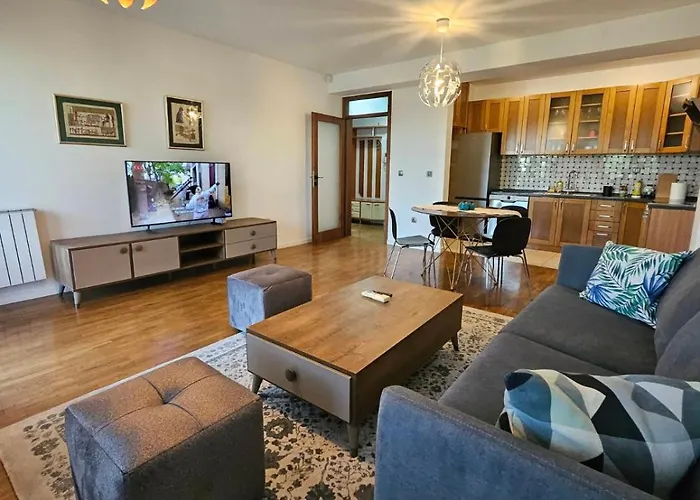 The 10-room Lovely Square Apartment Purple Velvet 43 Macedonia Stree Skopje is located a mere 1.8 km from Skopje train station and a mere 6 minutes' walk from the grand Archaeological Museum of North Macedonia. Wi-Fi is provided for both business and leisure activities.